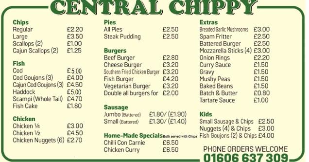 Central Chippy is conveniently located in Northwich, a town rich in history and community spirit. Just a stone's throw away from the main hustle and bustle, this charming fish and chip shop stands as a testament to local culinary tradition. The shop serves customers with both efficiency and warmth, providing a cozy nook for families and friends to gather. Accessibility is key here, with wheelchair-accessible seating and restrooms ensuring everyone can enjoy their meal comfortably. Parking is also free on the street, making it easy for locals and visitors to pop in for a bite. Central Chippy has built a loyal following due to its commitment to fresh ingredients and quality preparation. The surrounding area features vibrant local shops and parks, perfect for a stroll after enjoying a hearty meal. When the aromas of crispy batter and freshly cooked chips fill the air, it's clear that this spot doesn't just feed the body, but also fosters a true sense of community.